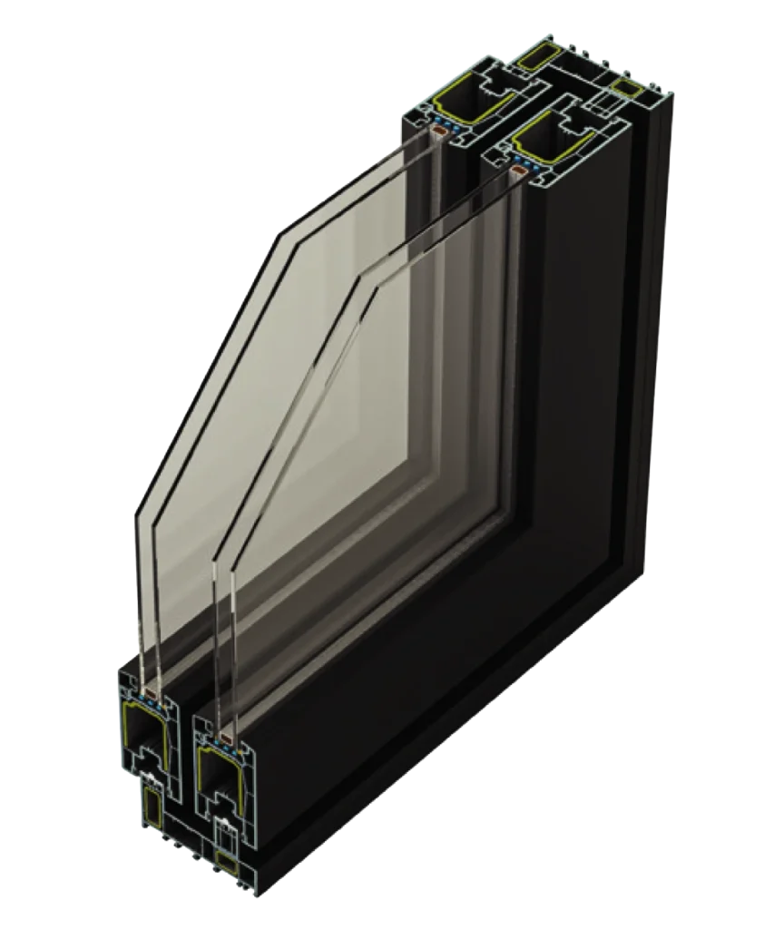 Posee refuerzo interior de acero galvanizado y permite acristalar vidrios simples y dobles de hasta 34 mm de espesor.